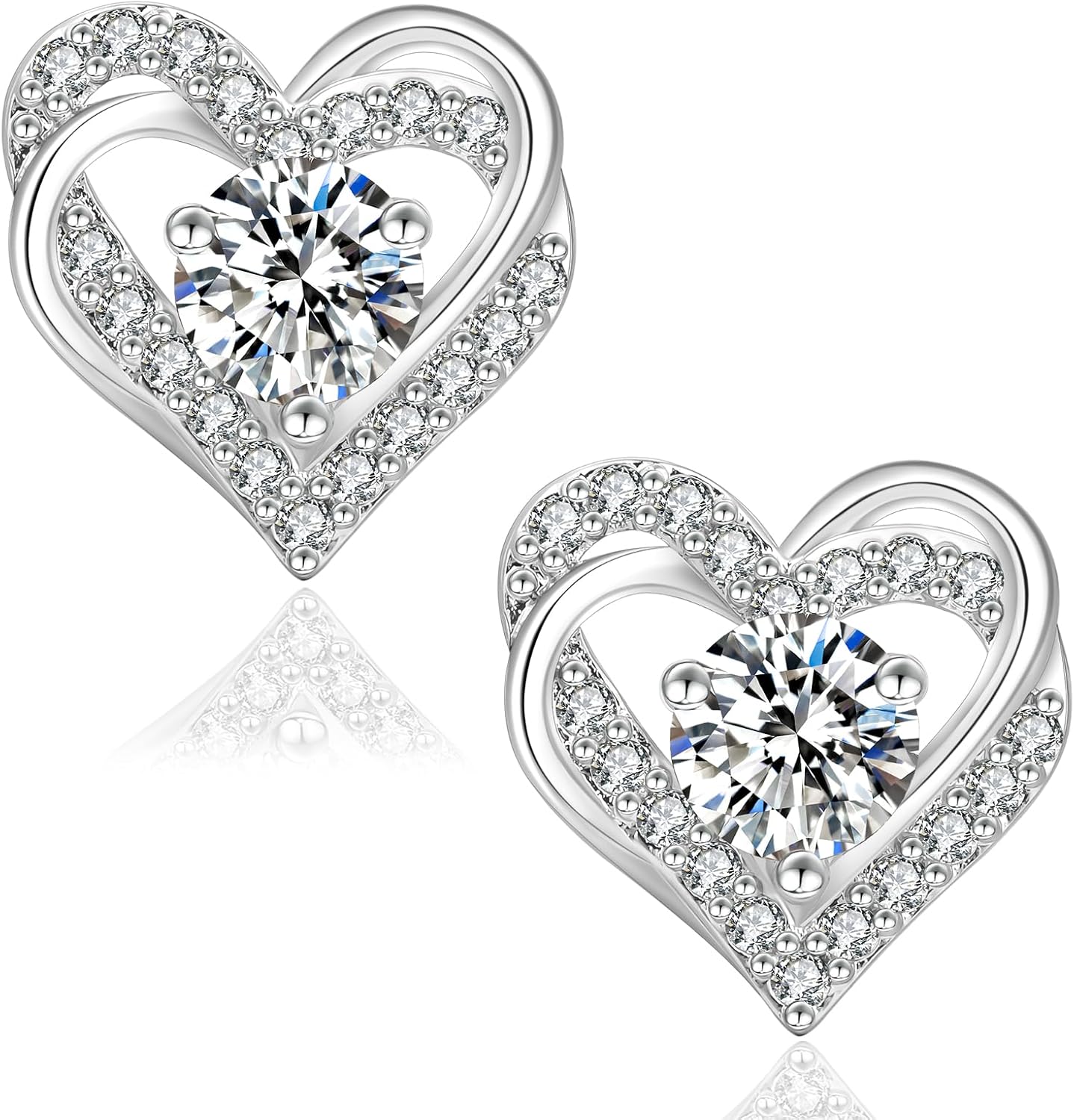 Moissanite Stud Earrings, 0.6ct-2ct Brilliant Heart Shape Lab Created Diamond Earrings, D Color VVS1 Clarity, White Gold Plated Silver Friction Back for Women