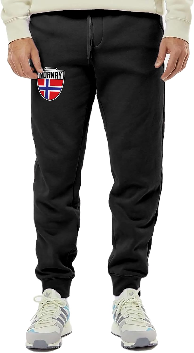 Norway Crest - Norwegian National Soccer Cup Unisex Drawstring Fleece Jogger Pants (X-Small, Black)