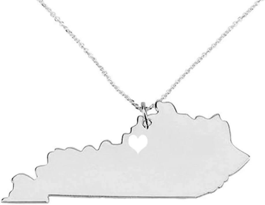 Art Attack Stainless Steel I Love Kentucky Necklace, Bluegrass State Heart Map Outline Pendant (Silver)