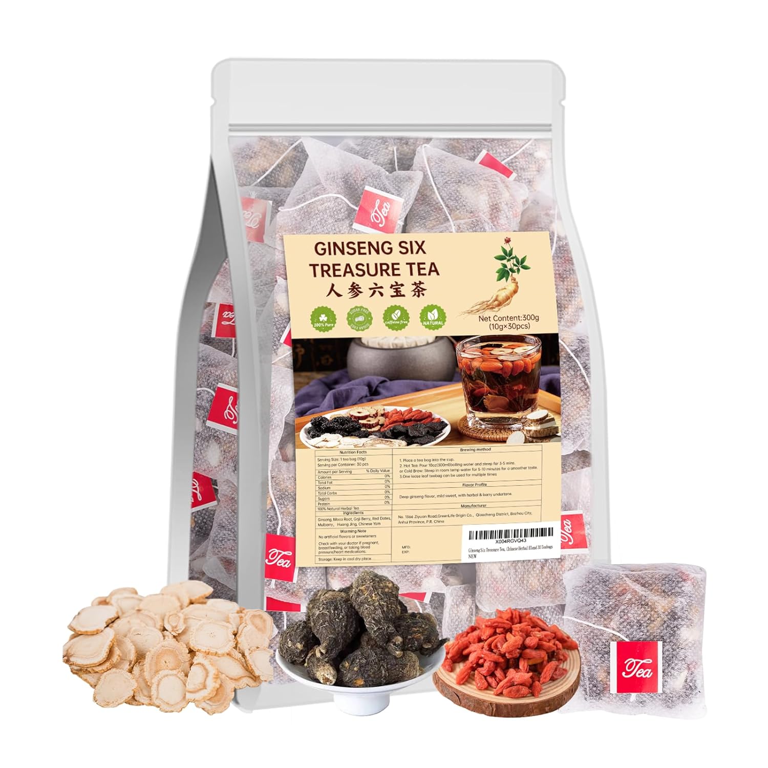 - TRADITIONAL BLEND: Six treasure tea blend featuring premium ginseng, maca root, red dates and other traditional Chinese herbs for a rich, nourishing experience