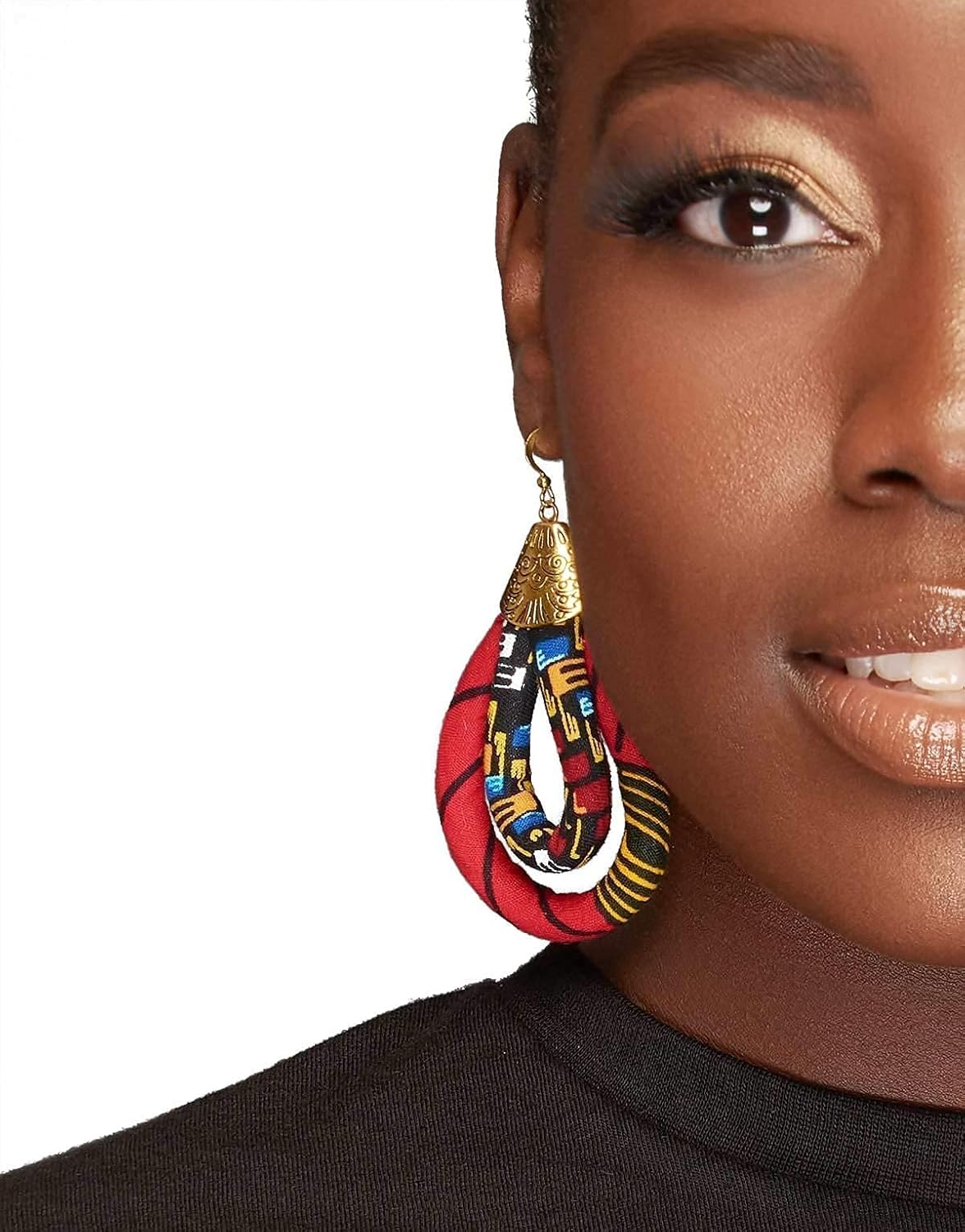 Red Ankara Hoop Earring | African Print Earrings | Mini Double Loop Earring | Ketepa Print Earring | African Print Jewelry Red, Yellow, Black | Afrocentric | Cloth & Cord