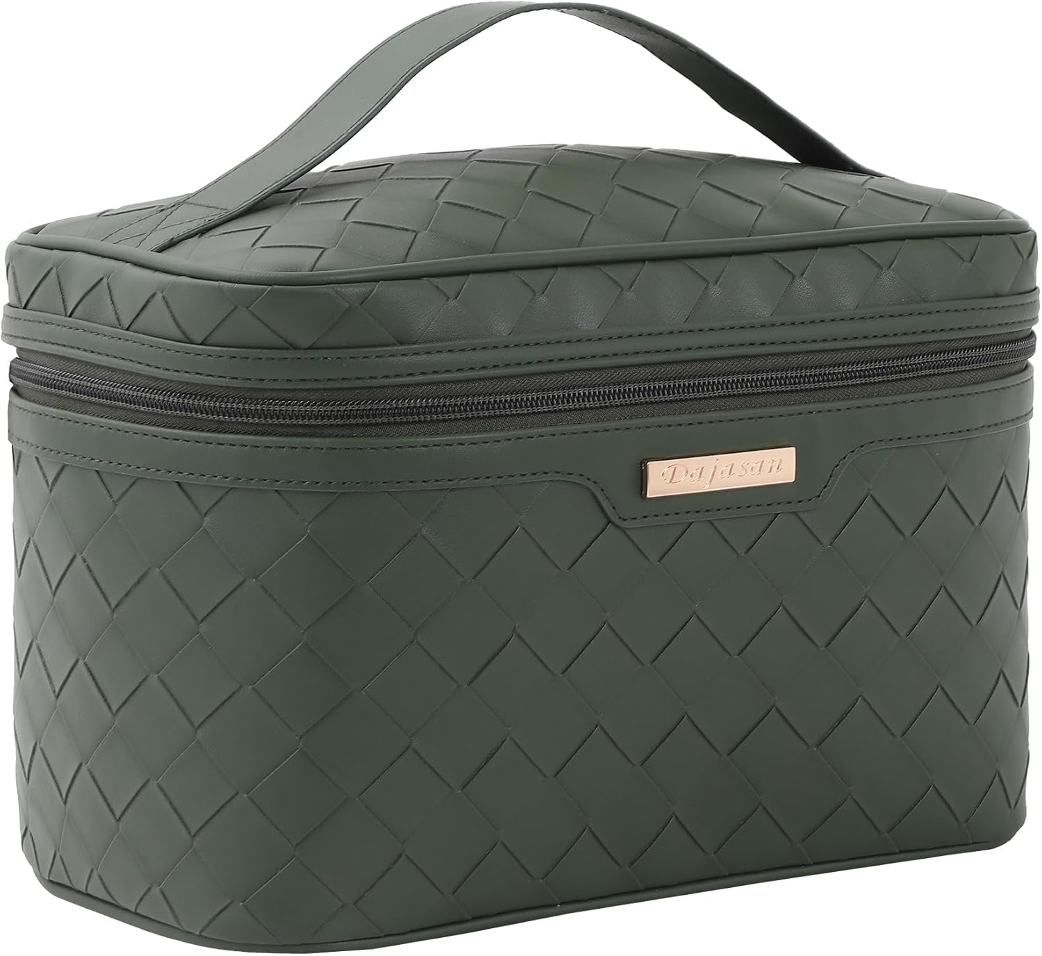 Dajasan Makeup Bag Cosmetic Bag, Travel Makeup Bag, Large Capacity Makeup Organizer Case, Large Toiletry Bag for Women Girls, PU Leather Waterproof 11.81 x 6.7 x 7.09 Inch (Green)