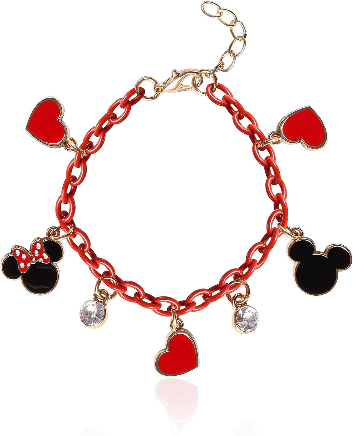 SALLY ROSE Mickey and Minnie Mouse Charm Bracelet with Red Chain Official License, 6.5"+1", Valentines Day Gifts for Her