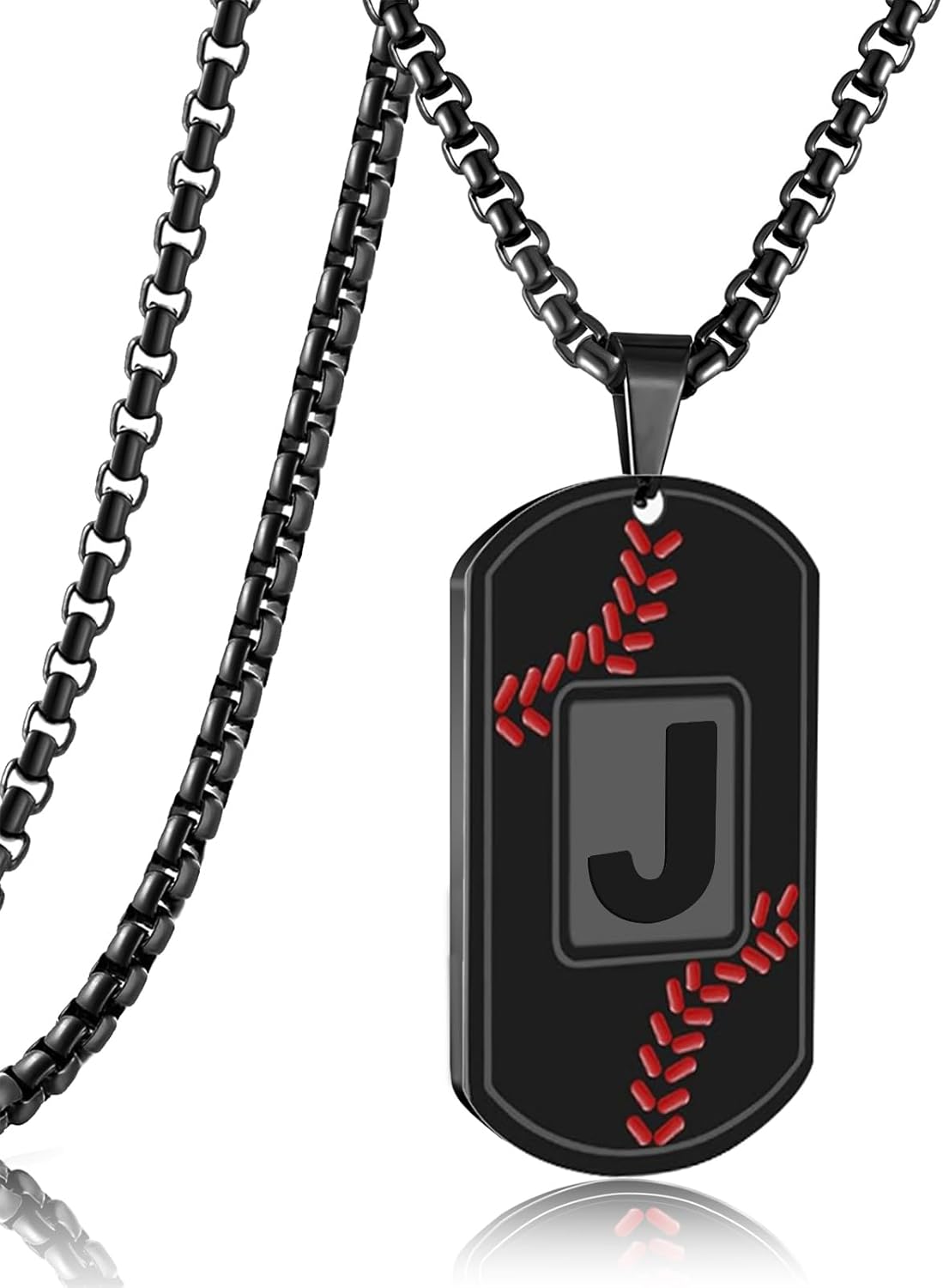 RWQIAN Baseball Necklace for Men,Initial A-Z Dog Tag Necklace for Men,Baseball Athletes Accessories Personalized Military Pendant 24 Inch Chain,Graduation Necklace for Father's Day Gifts