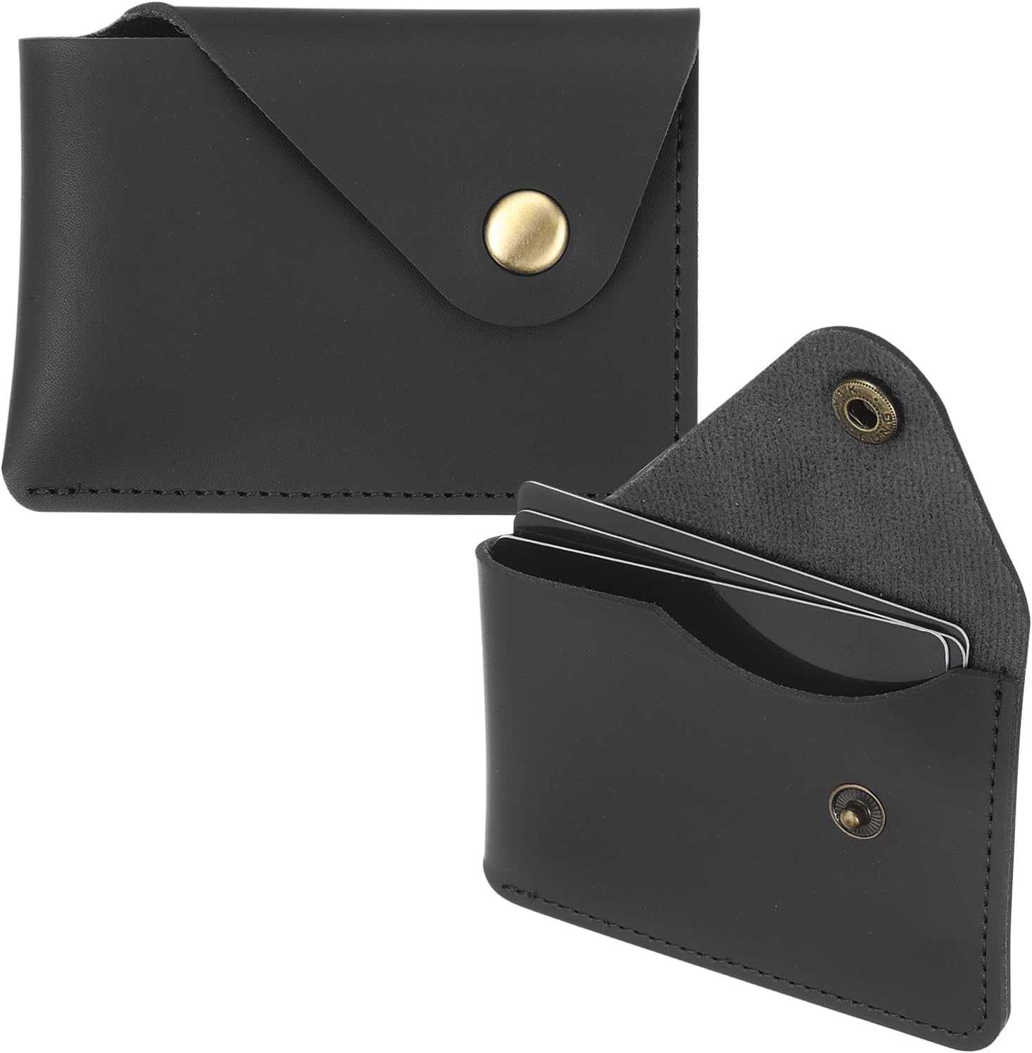 PATIKIL Slim Leather Card Holder with Snap Closure, 2 Pcs Leather Front Pocket Wallet Card Case Holder for Cash Coin Men and Women Business Office, Black