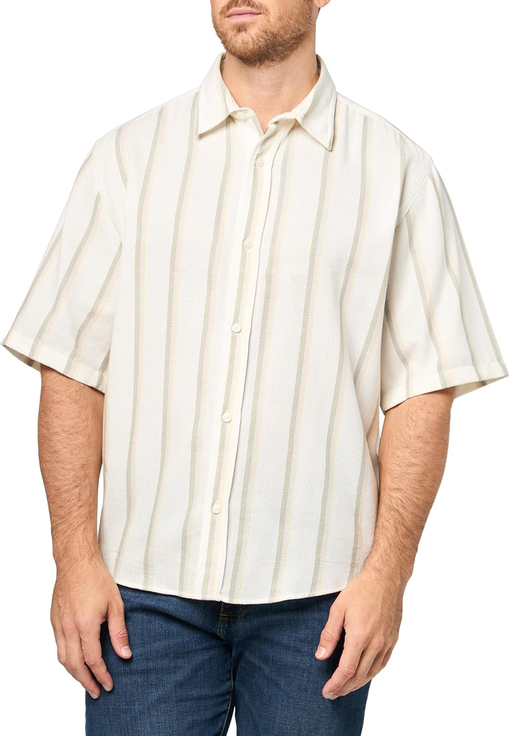 HUGO Men's Striped Weave Short Sleeve Button Down Shirt