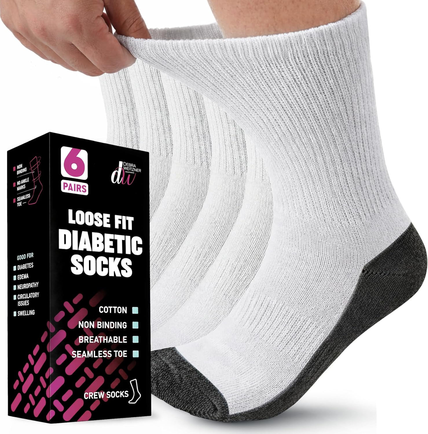 Debra Weitzner Diabetic Socks For Men and Women Loose Fit Non-Binding Cotton Crew Socks 6 Pairs