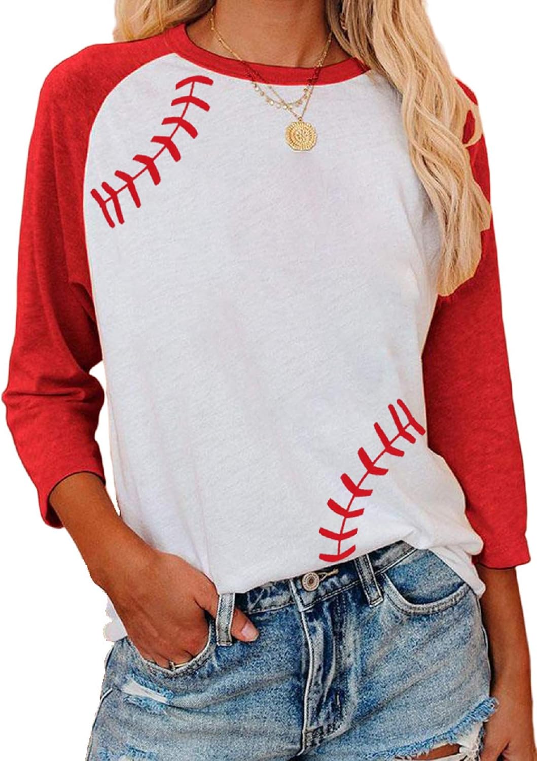Womens Baseball Tee 3/4 Sleeve Fashion Crewneck Tops Color Block Blouse Casual Raglan Shirt