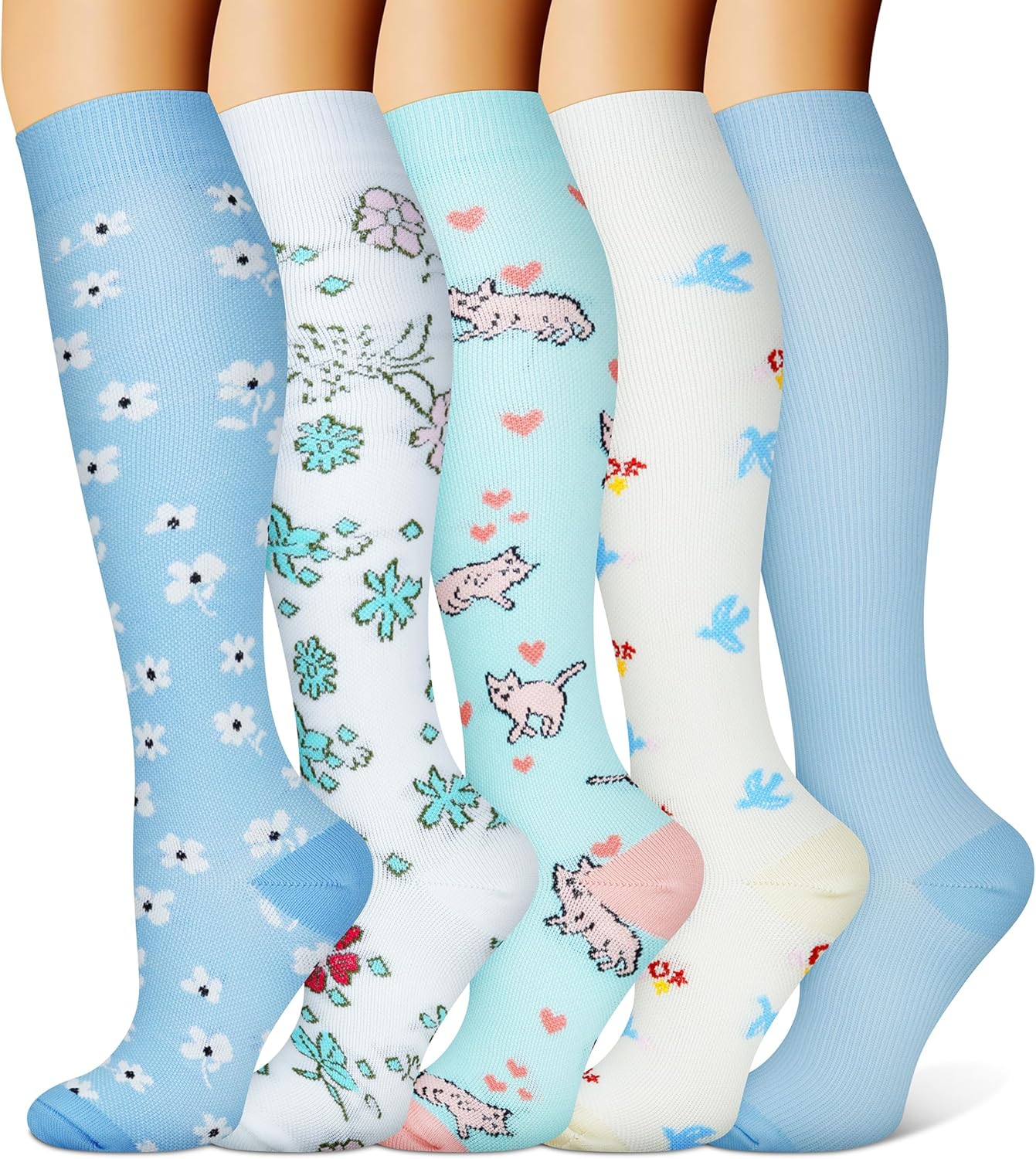 FEYHAY Copper Compression Socks (5 Pairs) 15-20 mmHg Circulation is Best Athletic & Daily for Men & Women, Running, Climbing