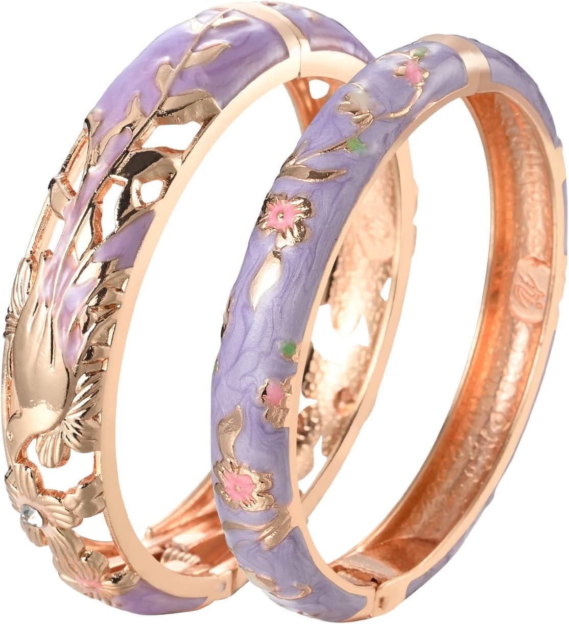 UJOY Colors Handcraft Jewelry Cloisonne Bracelet Enamel Hollowed Bird Spring Hinged Womens Bangles Gifts Box 88A31-55C49