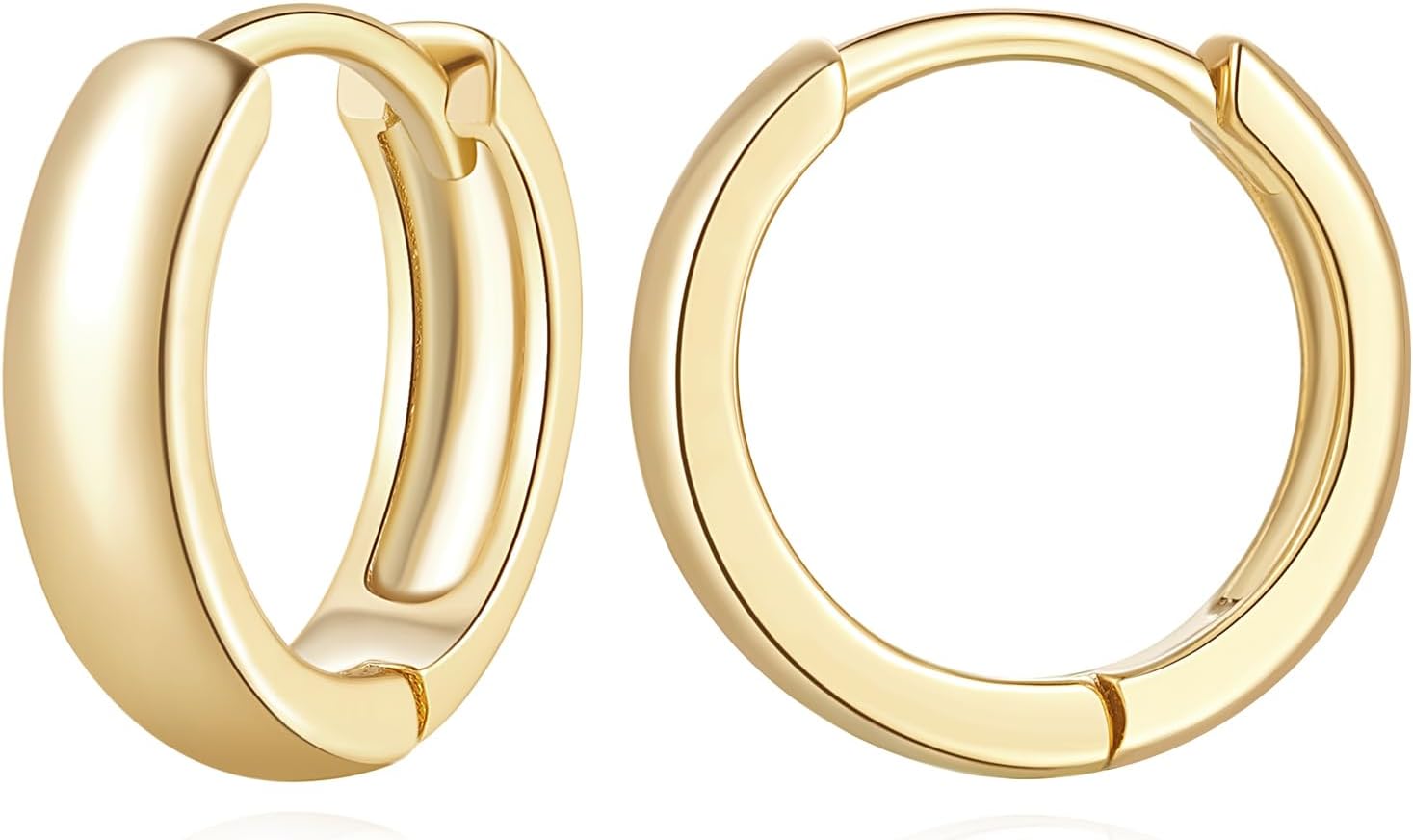 14K Gold Earrings for Women Gold Hoop Earrings for Women Huggie Earring Chunky Classic Circular with Clean Streamlined Lines Dainty Huggie Hoop Earring for Womens