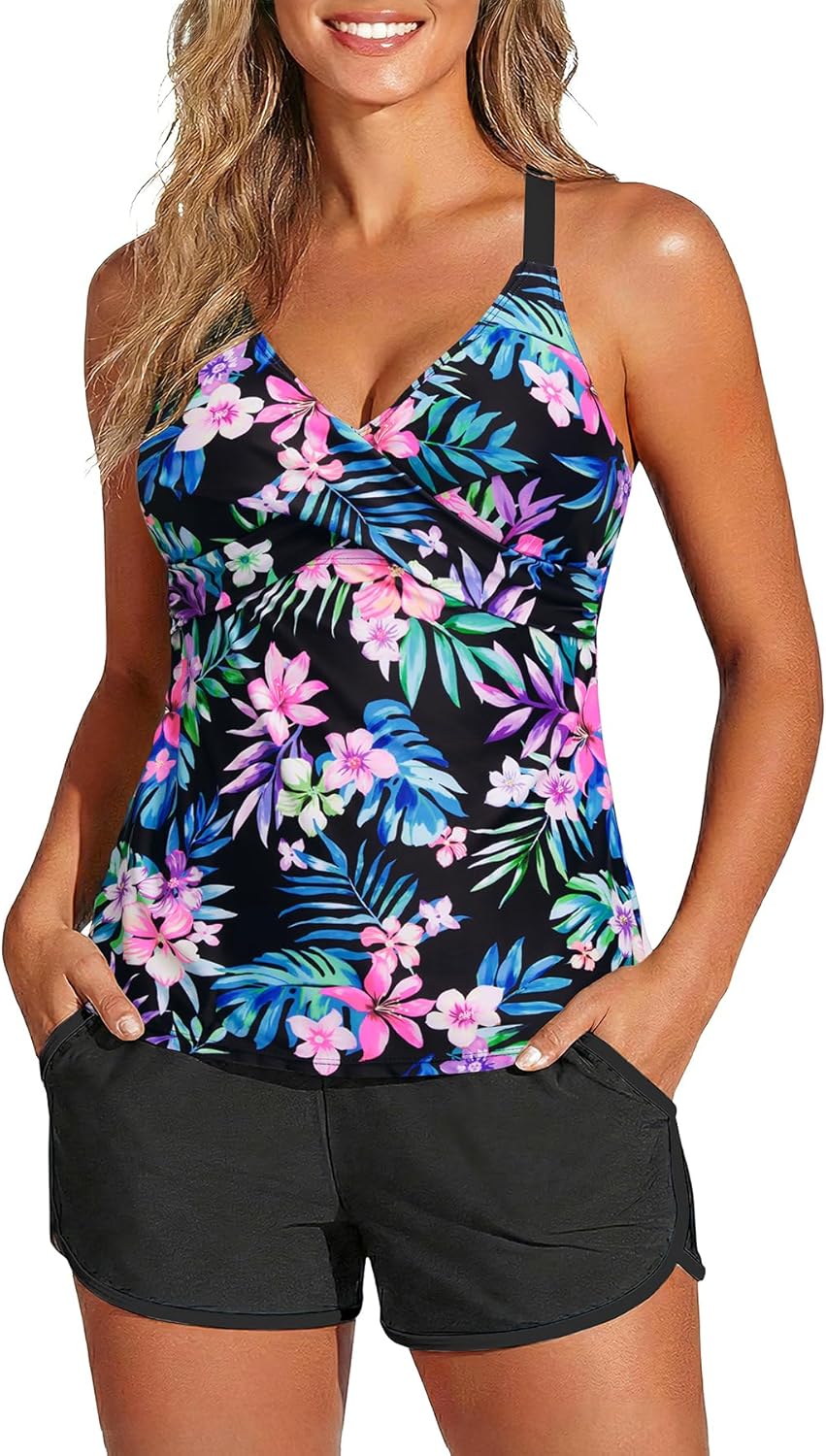 Womens Tankini with Shorts - Two Piece Tummy Control Swimsuit Athletic Bathing Suit with Pockets 2025 Swimwear