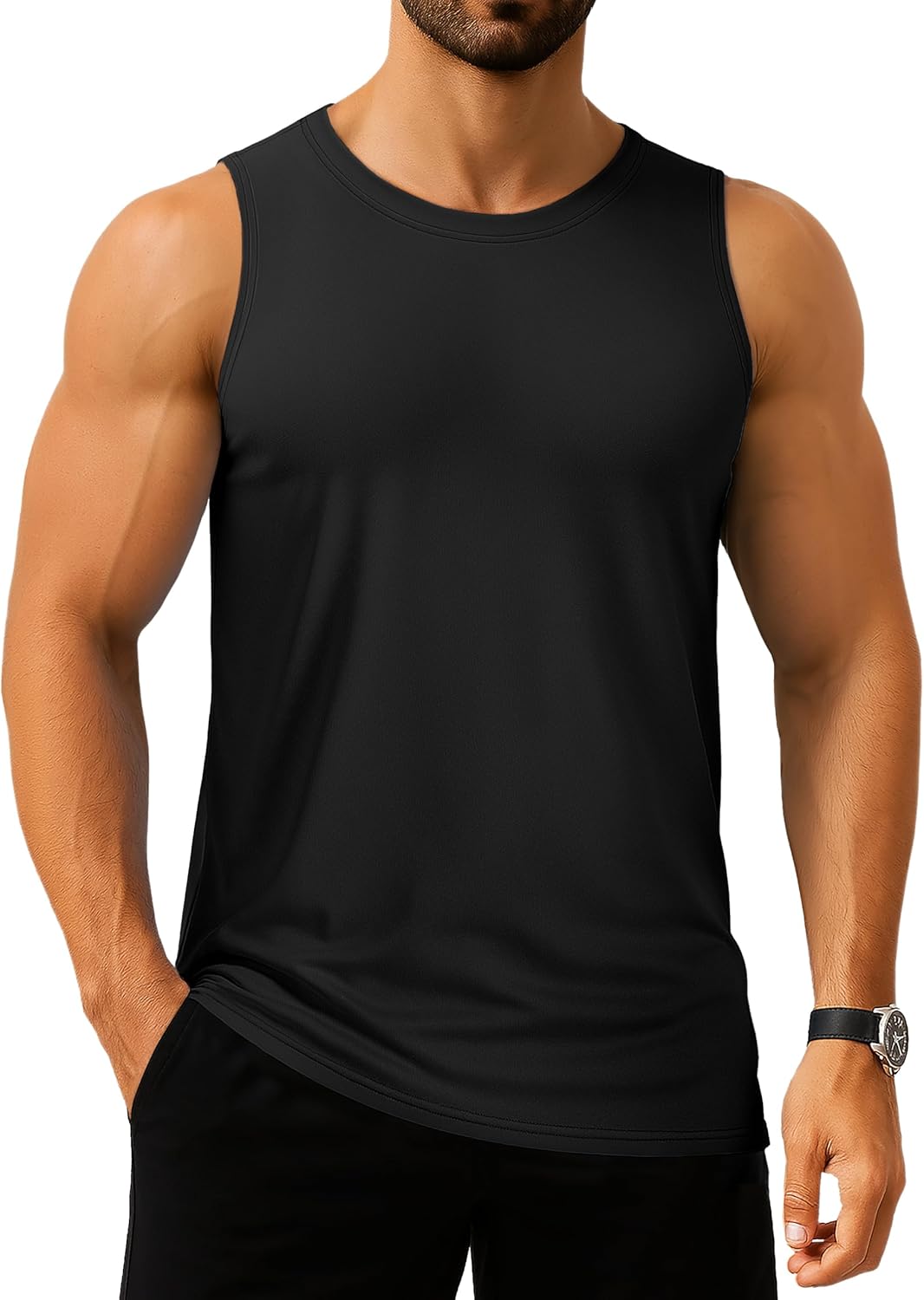 TACVASEN Sleeveless Shirts for Men Workout Tank Tops Dry Fit Muscle Shirt Sun Protection Gym Running Athletic Summer