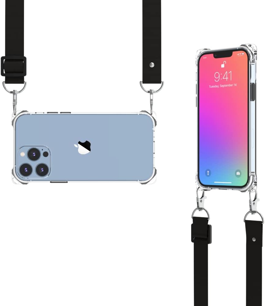 for iPhone 13 Pro Crystal Clear Case with Detachable Adjustable Crossbody Strap, Slim Fit Shockproof Protective Phone Case with Anti-Lost Shoulder Neck Lanyard for Girls and Women