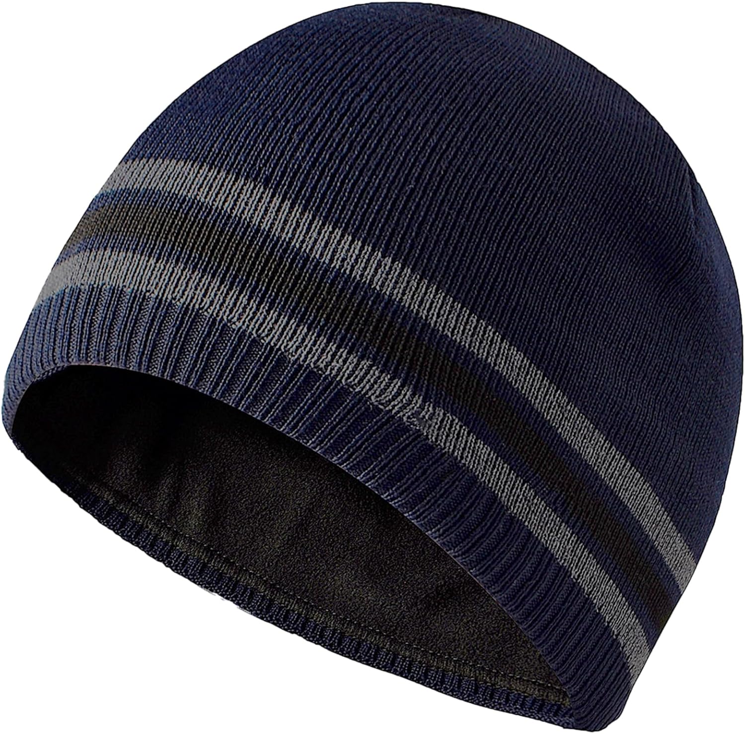 Knit Beanie Hats for Men Women, Warm Lined Striped Windproof Unisex Soft Ski Beanie Cap for Autumn Winter