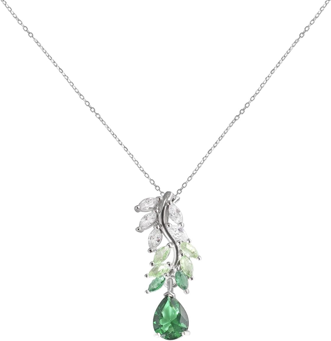 925 Sterling Silver Elegant Green Necklace for Women,Adjustable 17.7-19.7 Inch Chain, Valentine's Day Anniversary Birthday Gifts for Wife Girlfriend