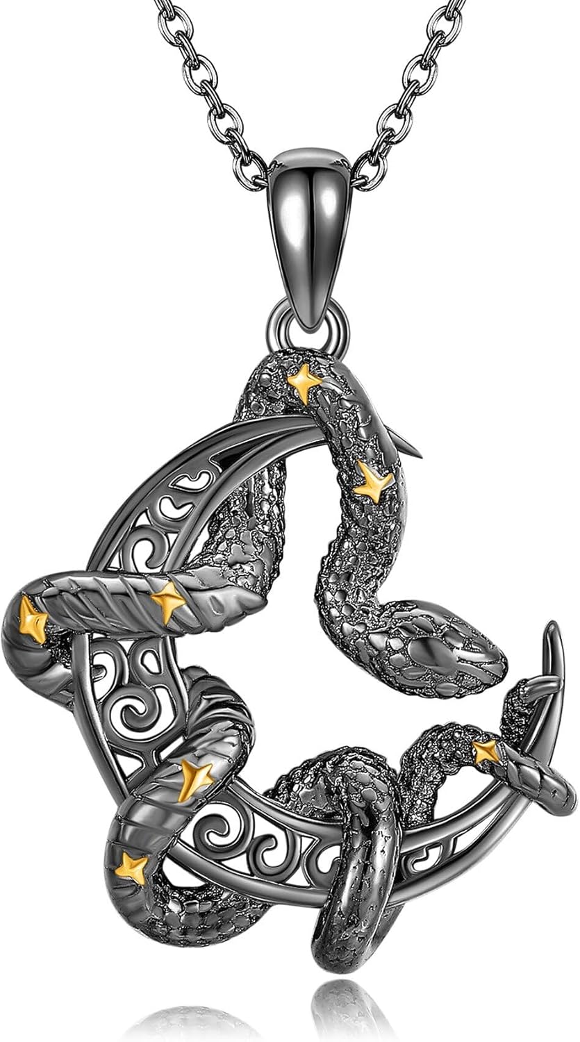 YAFEINI Black Snake Necklace 925 Sterling Silver Cresent Snake Pendant Necklace Gothic Animal Jewelry for Women Mom