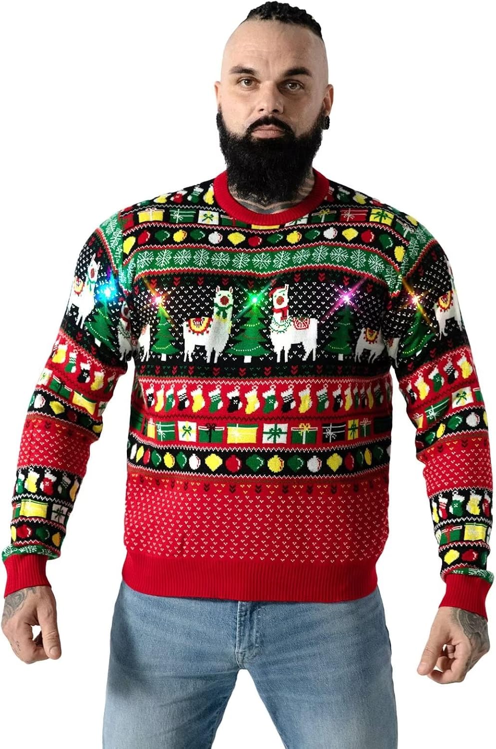 LED Ugly Christmas Sweater for Men, Unisex Women Xmas Pullover with Light for Party FestiveMediumFestive Light & Bauble Bright