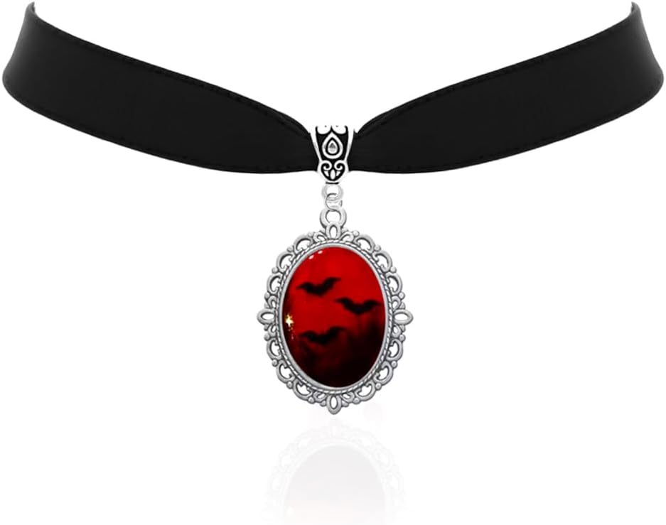 Blood Bat Cameo Choker Necklace Gothic Red Cabochon Pendent Necklace Vampire Accessories for Women