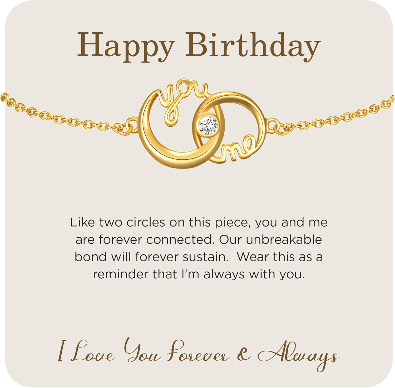 NORBU S925 You and Me Infinity Bracelet Gift for Women, Gold over Sterling Silver Link Charm Bracelet with Interlocking Circle, Jewelry Gift for Birthday Valentine Mothers Day Christmas with Gifts Box
