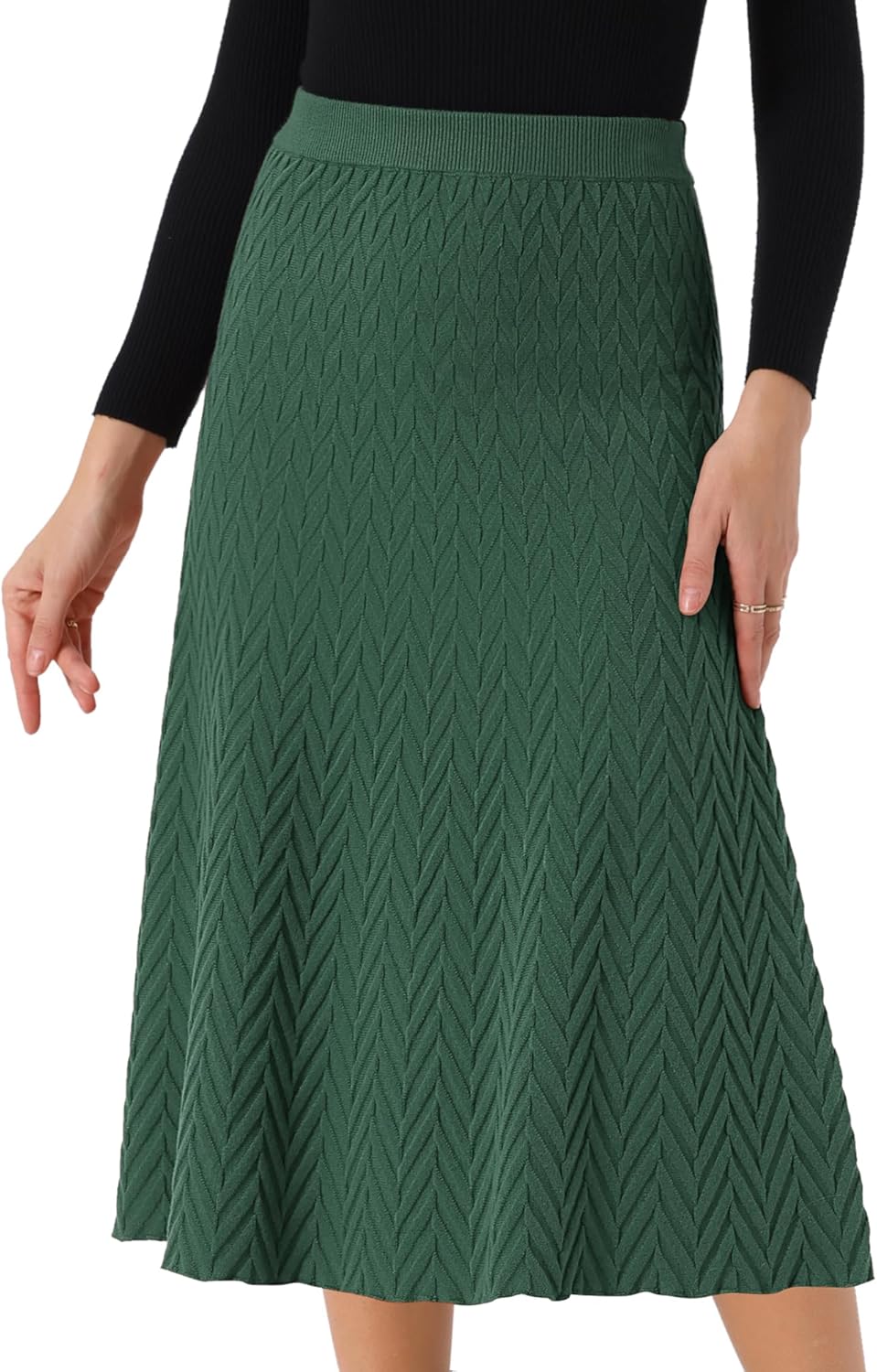 Seta T Women's Ribbed Knit A-Line Skirts Elastic High Waist Stretchy Sweater Midi Skirt