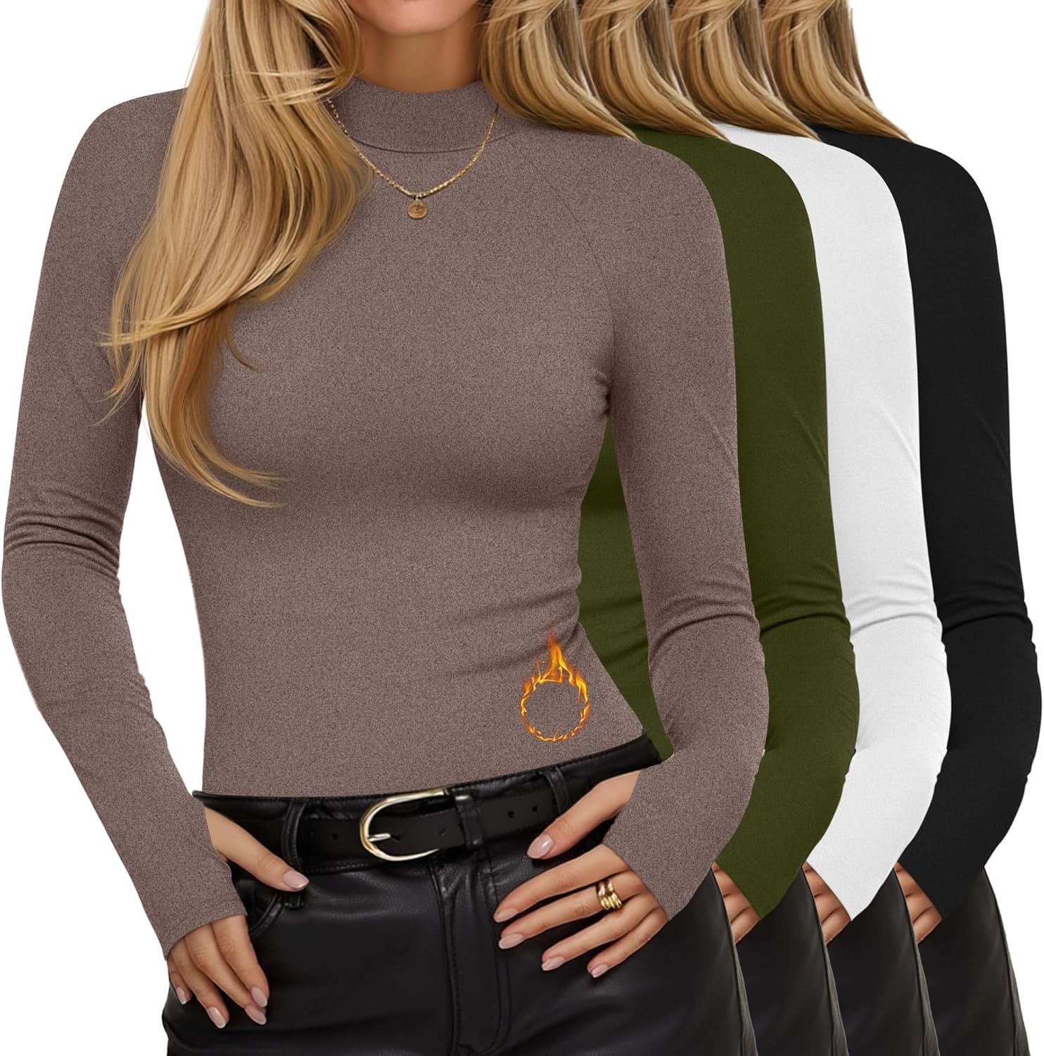 4 Pack Women's Thermal Mock Turtleneck Tops Fleece Long Sleeve Shirts Undershirt Pullover Tops with Thumb Holes