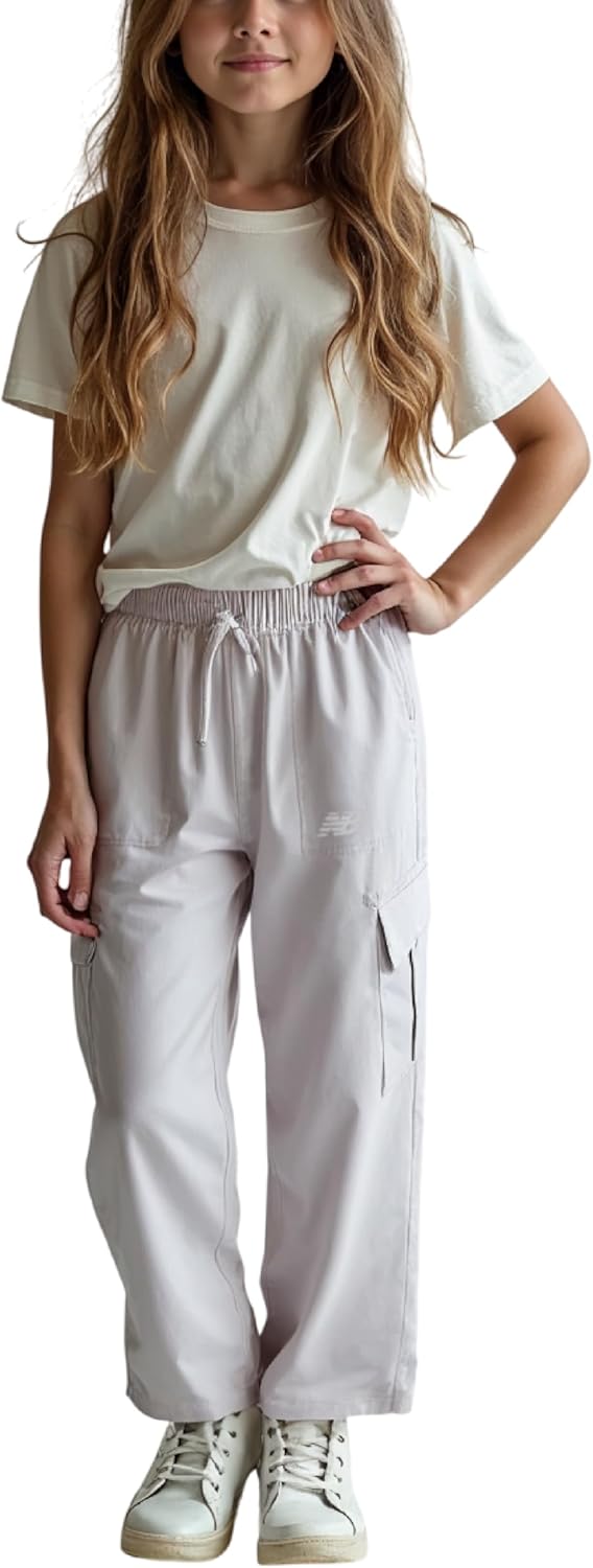 New Balance Active Girls Pants - Athletic Stretch Woven Wide Leg Joggers - Kids Dance School Cargo Pants (7-16)