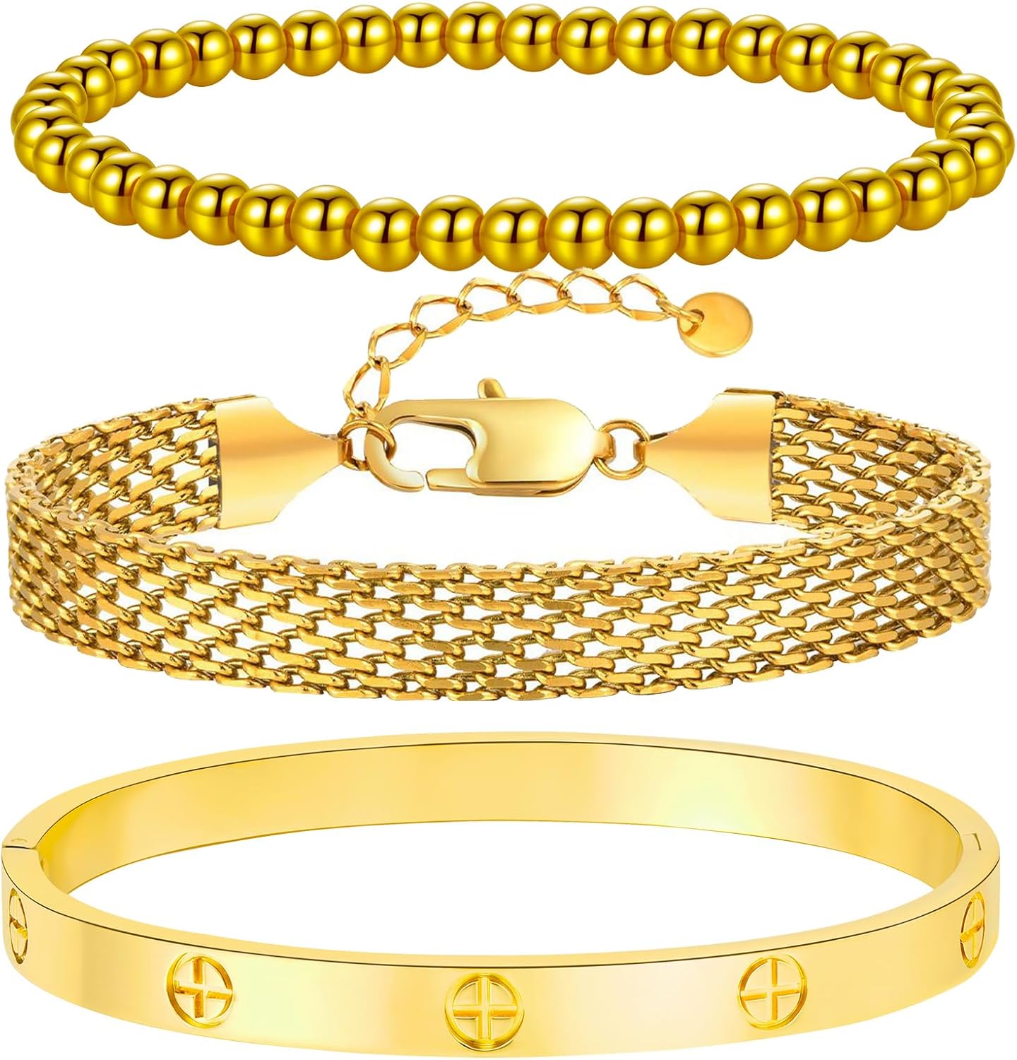 18K Gold Plated Love Bangle Bracelet Set Cubic Zirconia Classic Stainless Steel Adjustable CZ Gold Tennis Love Bracelets Stack for women