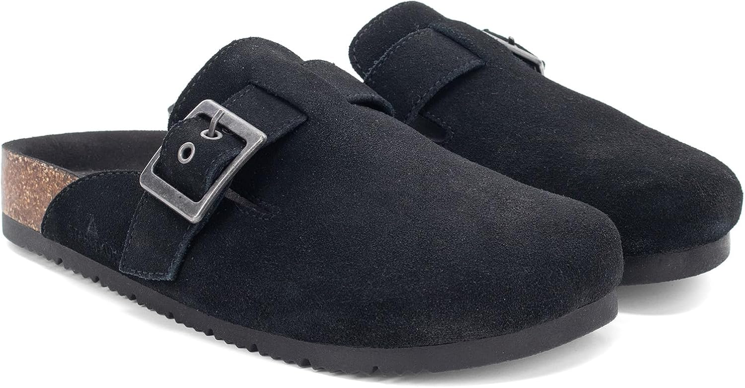 Staheekum Womens Crescent Suede Clog Slippers – Slip-On Mules with Microsuede Lining and Defender Water & Stain Repellent