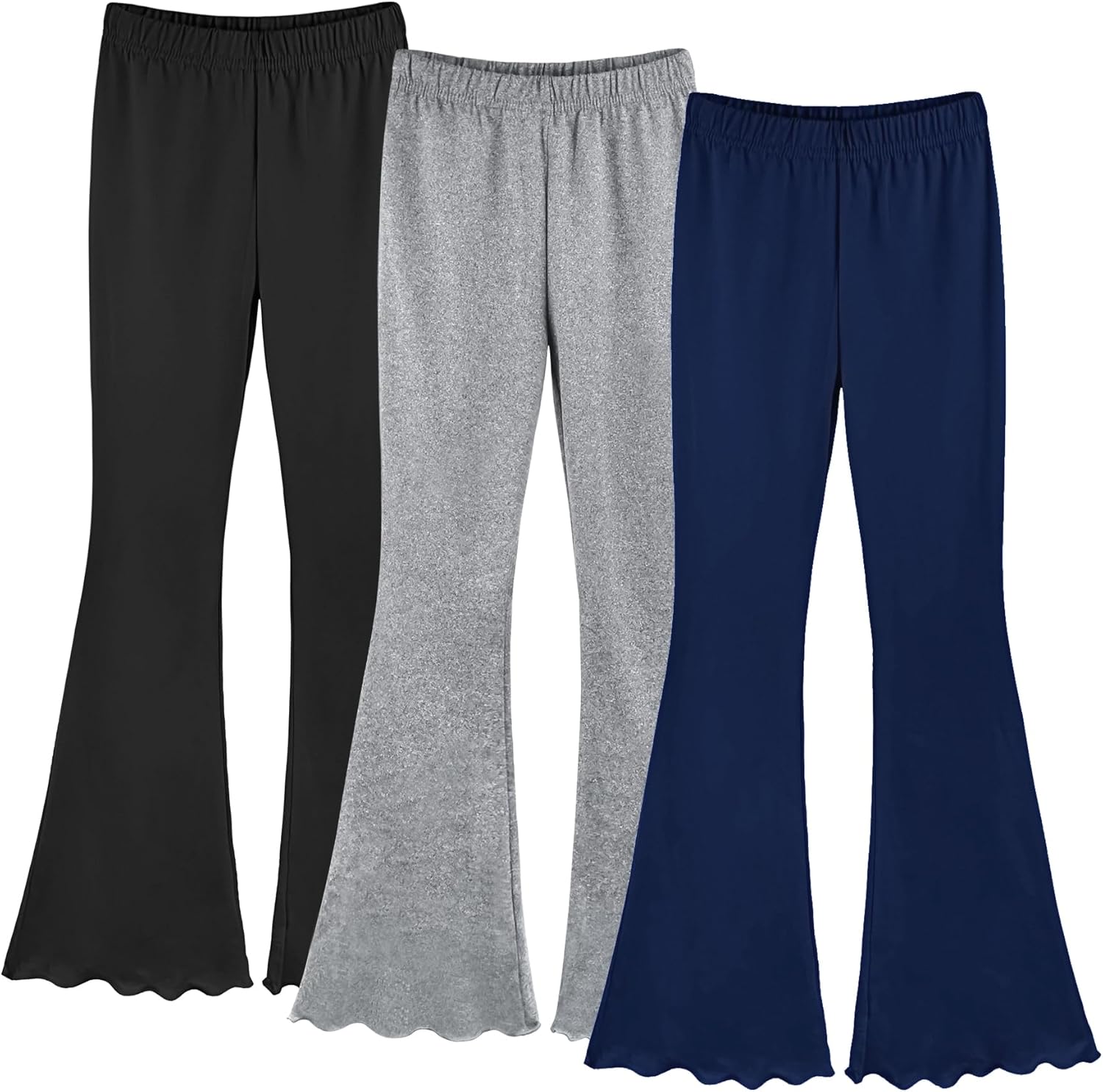 ZukoCert 3 Pack Girls Flare Leggings, Mid Waist Bell Bottom Pants for Kids, Kids Flare Pants Size 4-13Y
