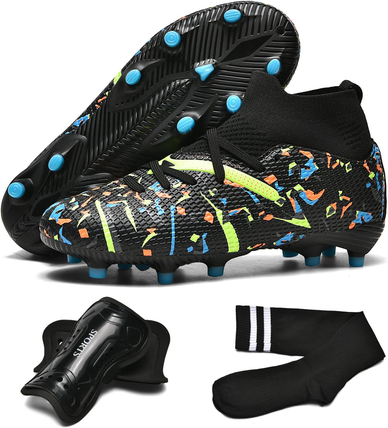 Kids Soccer Cleats Boys Girls Youth Football Shoes for Little/Big Kid Outdoor Indoor Firm Ground Athletic ,with Shin Guards and Soccer Socks