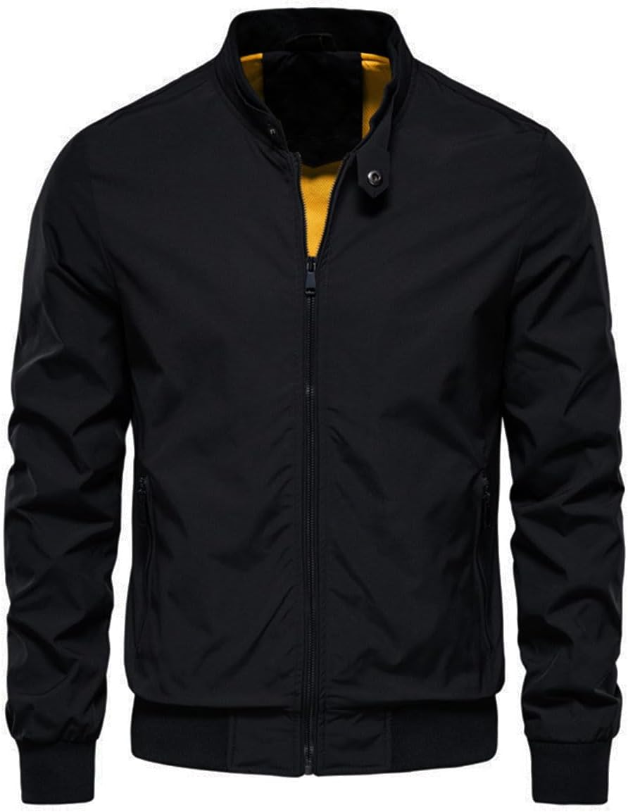 Mirroryou Men's Bomber Jacket Causal Fashion Zipper Casual Jacket Solid Color Stand Windbreaker