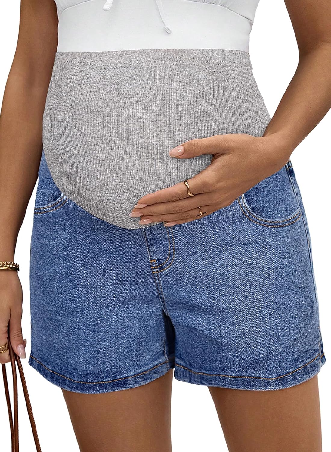 BLENCOT Women's Maternity Denim Shorts Over Belly Pregnancy Lounge Workout Jeans Short with Pockets
