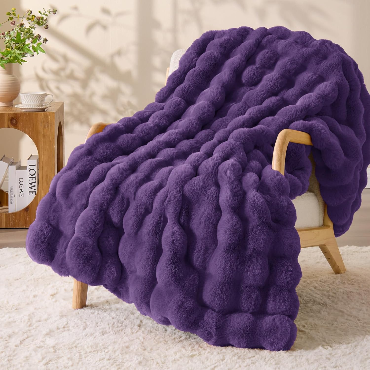 BEDELITE Faux Fur Throw Blanket, Soft Cozy Plush Purple Bubble Blanket for Couch Sofa Bedroom Living Room Decor - 870GSM Thick Warm Fuzzy Fluffy Faux Rabbit Fur Blanket for Women Gift, 50x60 Inches
