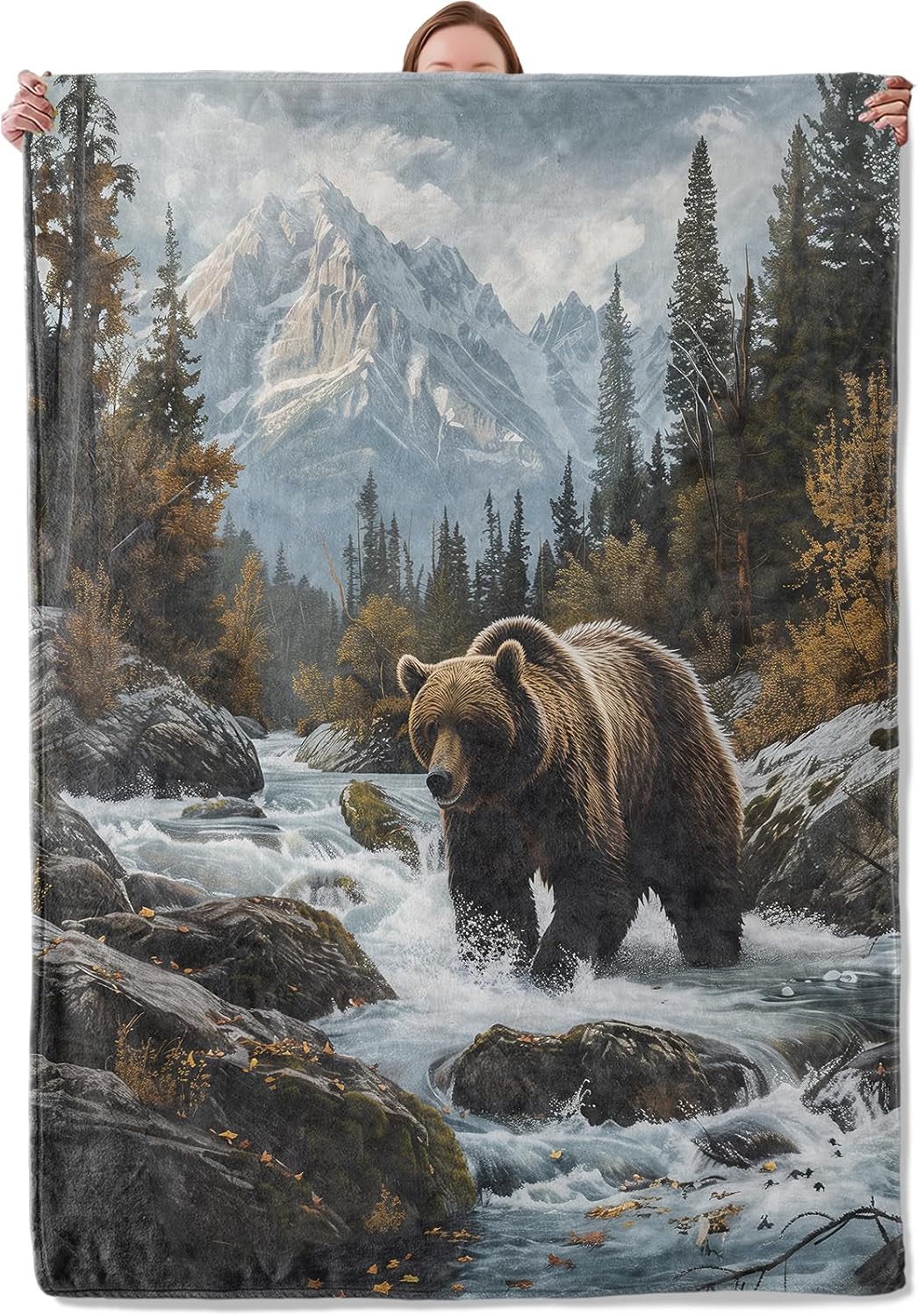 Grizzly Bear Theme Blanket Gifts for Women Girls, Soft Warm Lightweight Flannel Throw Blankets for Living Room Home Sofa Travel Decor 50" x 60"