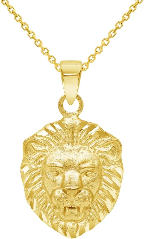 Jewelry America 14k Yellow Gold Mini Lion Head Charm Animal Pendant Necklace
