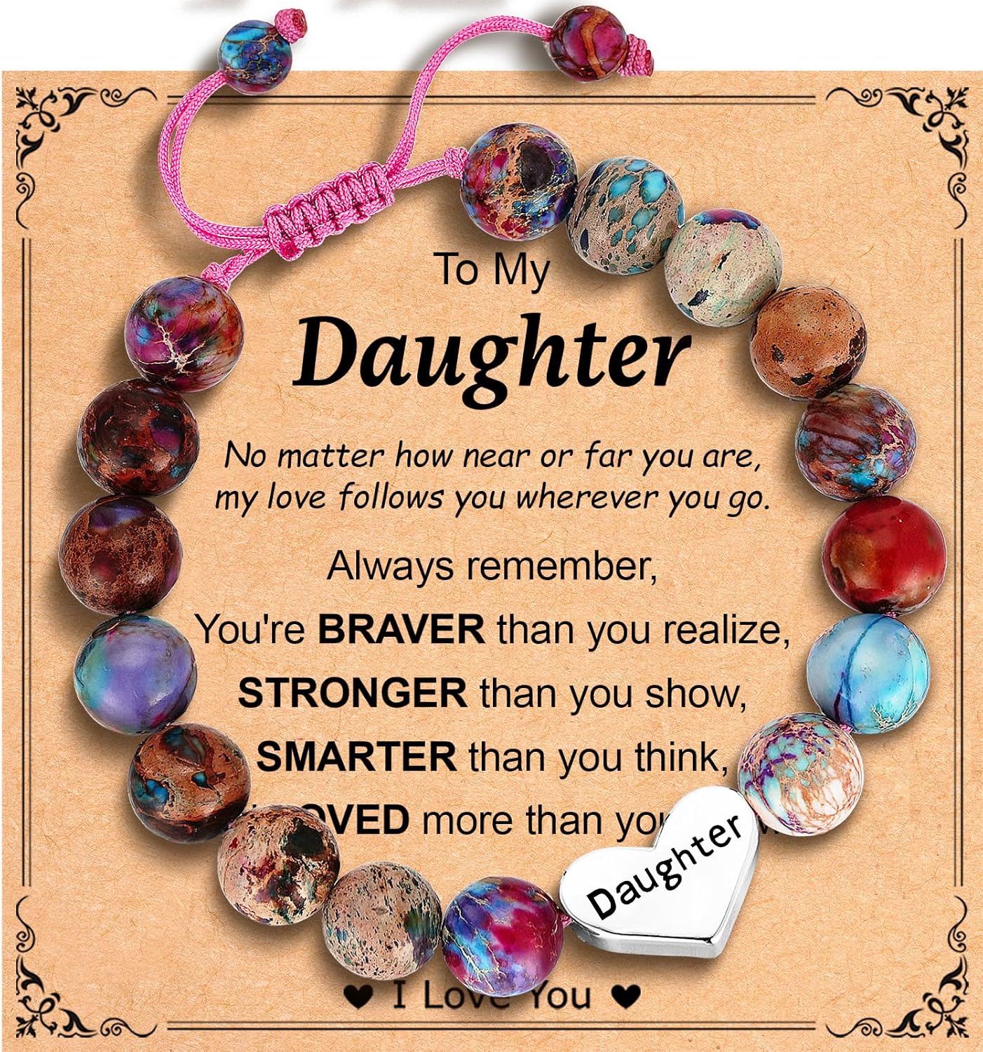 Granddaughter Daughter Gifts -Heart Natural Stone Beaded Bracelet for Girls, Valentines Birthday Gifts for Girls Daughter Granddaughter