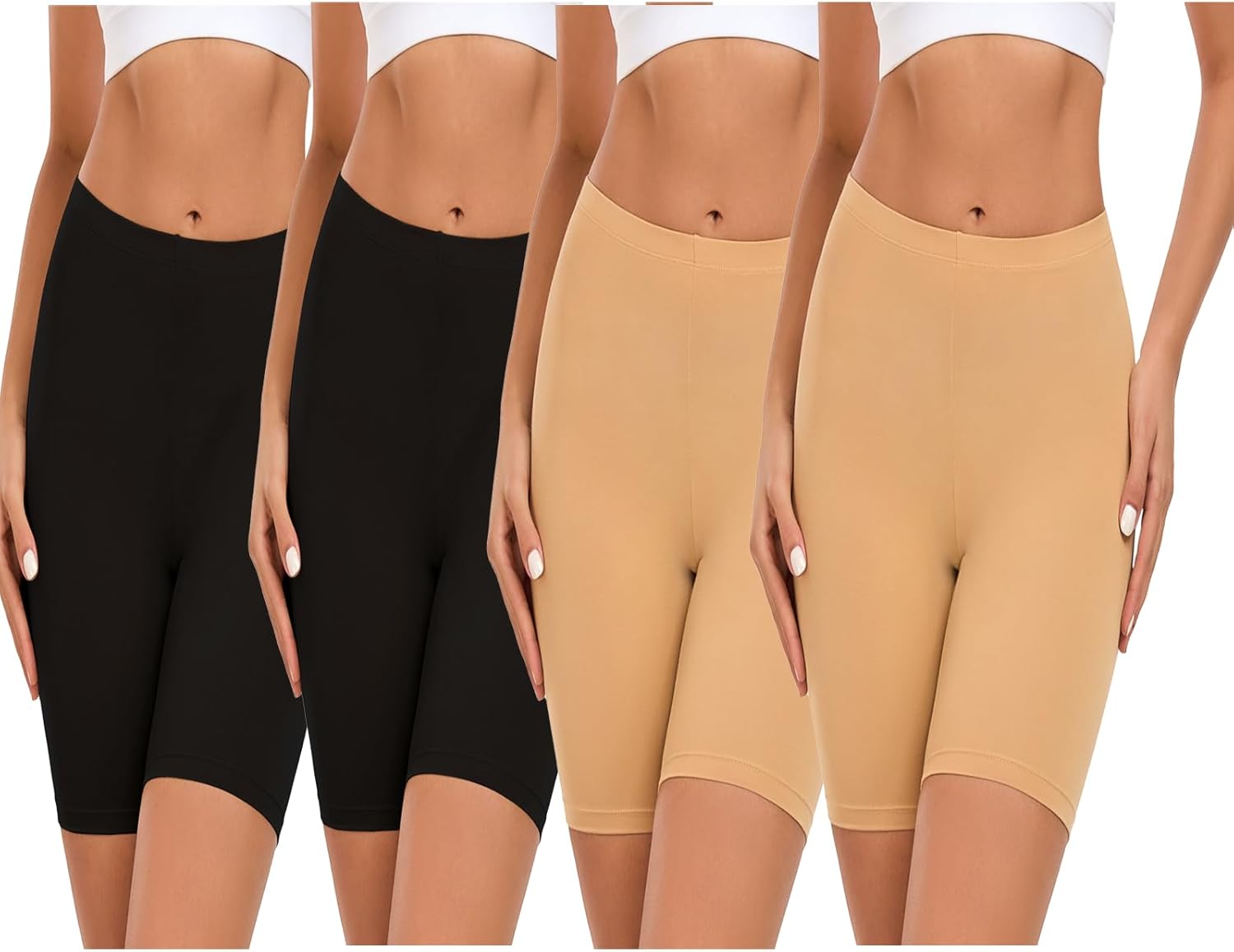 sellto 4 Pack Cotton Boy Shorts, Boxer Slip Shorts for Under Dress, Anti Chafing Panties for Women