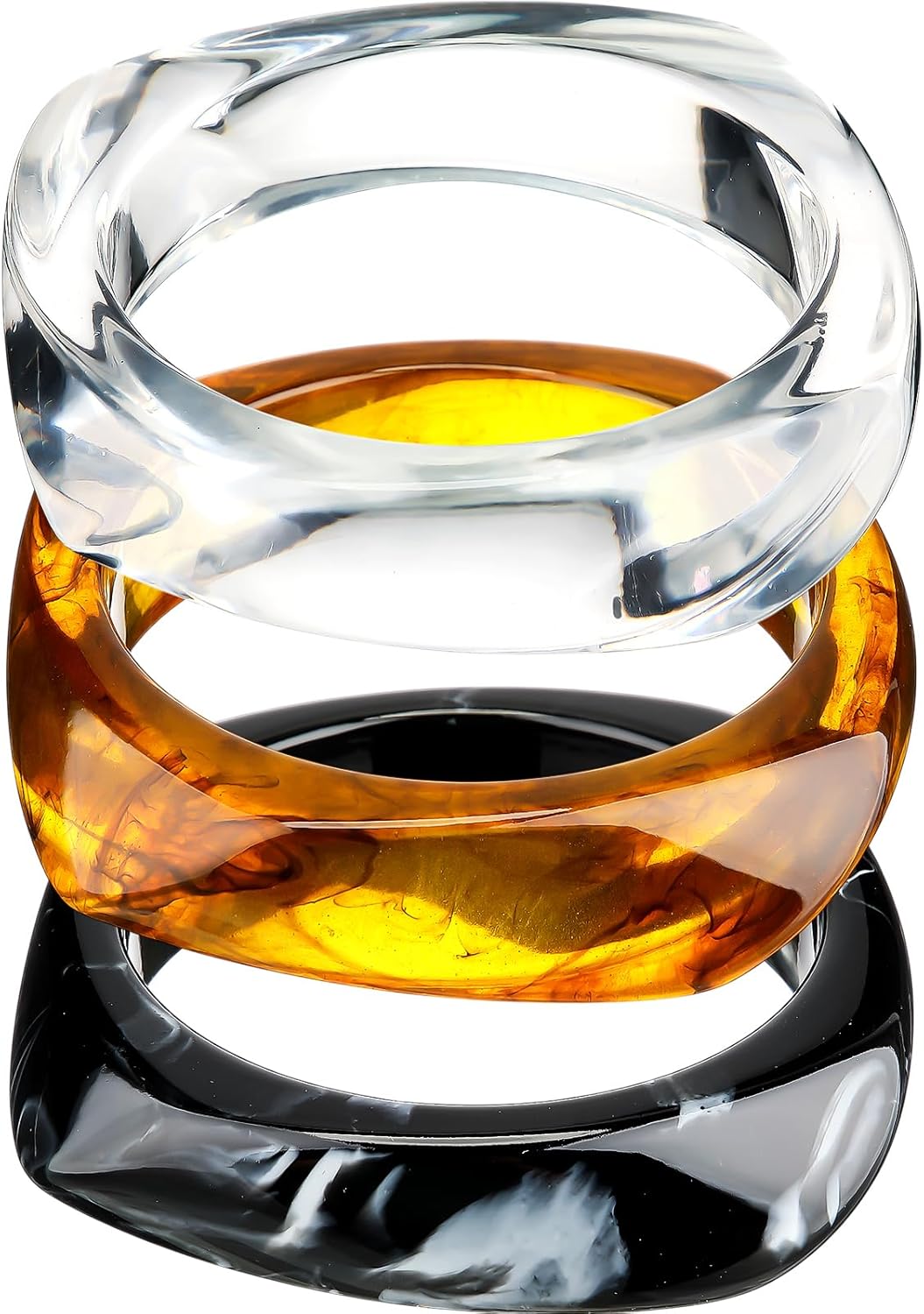 Landical 3 Pcs Colorful Square Acrylic Resin Bangle Bracelet Wide Geometric Irregular Wristbands Women