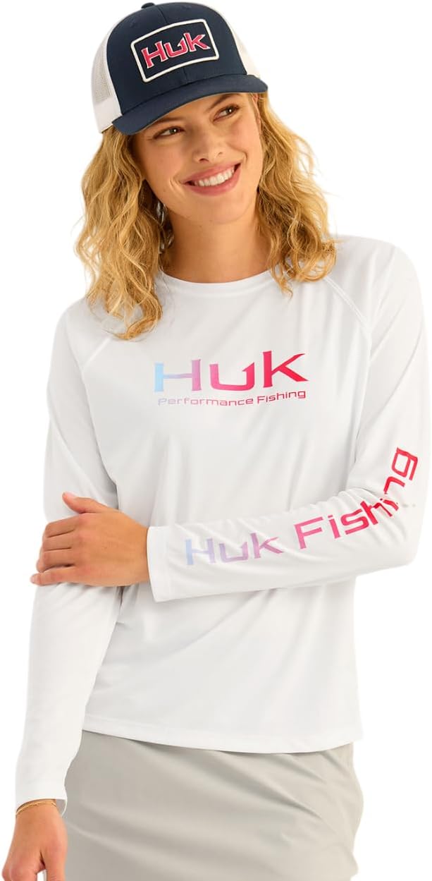 HUK Women's Standard Pursuit Long Sleeve, Performance Shirt + Sun Protection, White 3.0