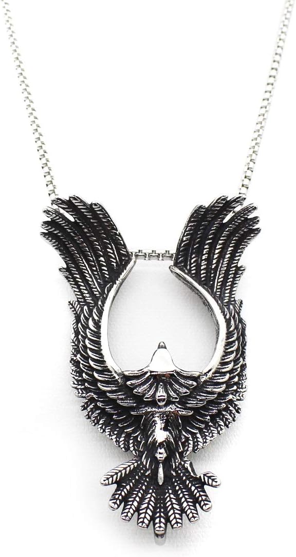 Eagle Pendant, Flying Bald Eagle Necklace for Men, Norse Viking Eagle Wing Necklace Eagle Jewelry, Hip Hop Hawk Charm Necklace Stainless Steel Punk Eagle Animal Pendant Necklace for men