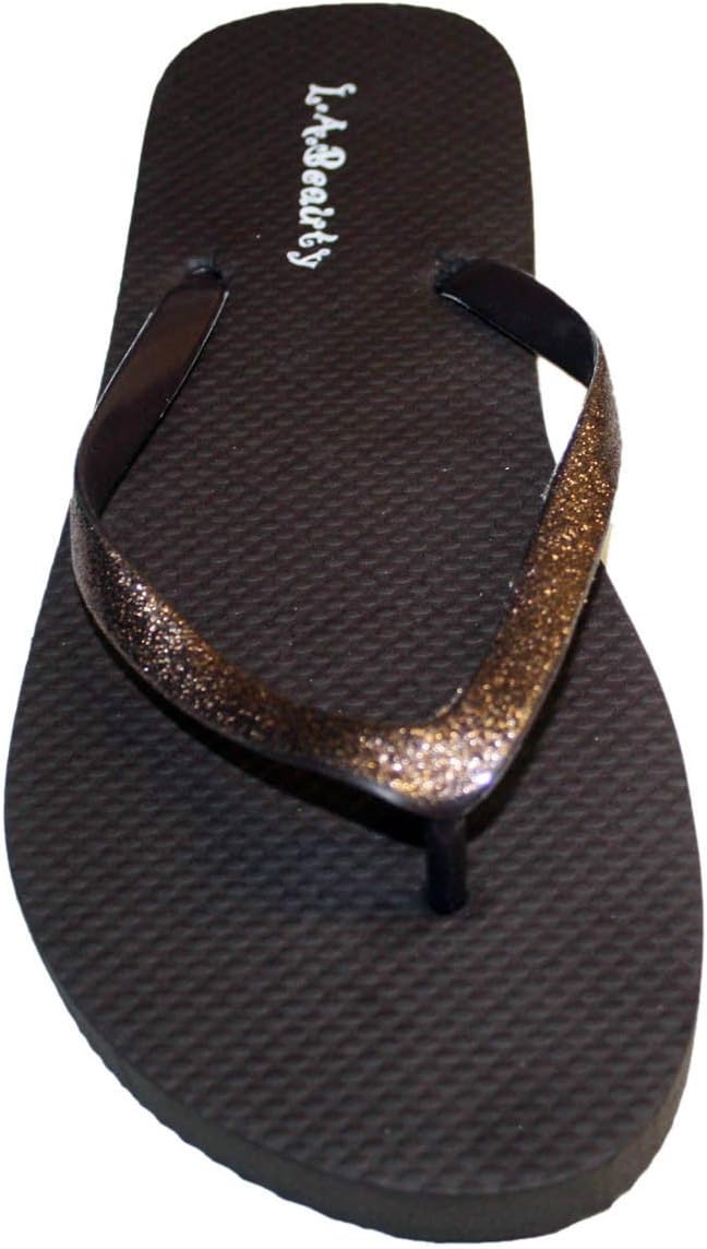 Dona Michi Leather Womens Flip Flop with Glitter Straps and Comportable Footbed, Cool Looking Style-Brown_10