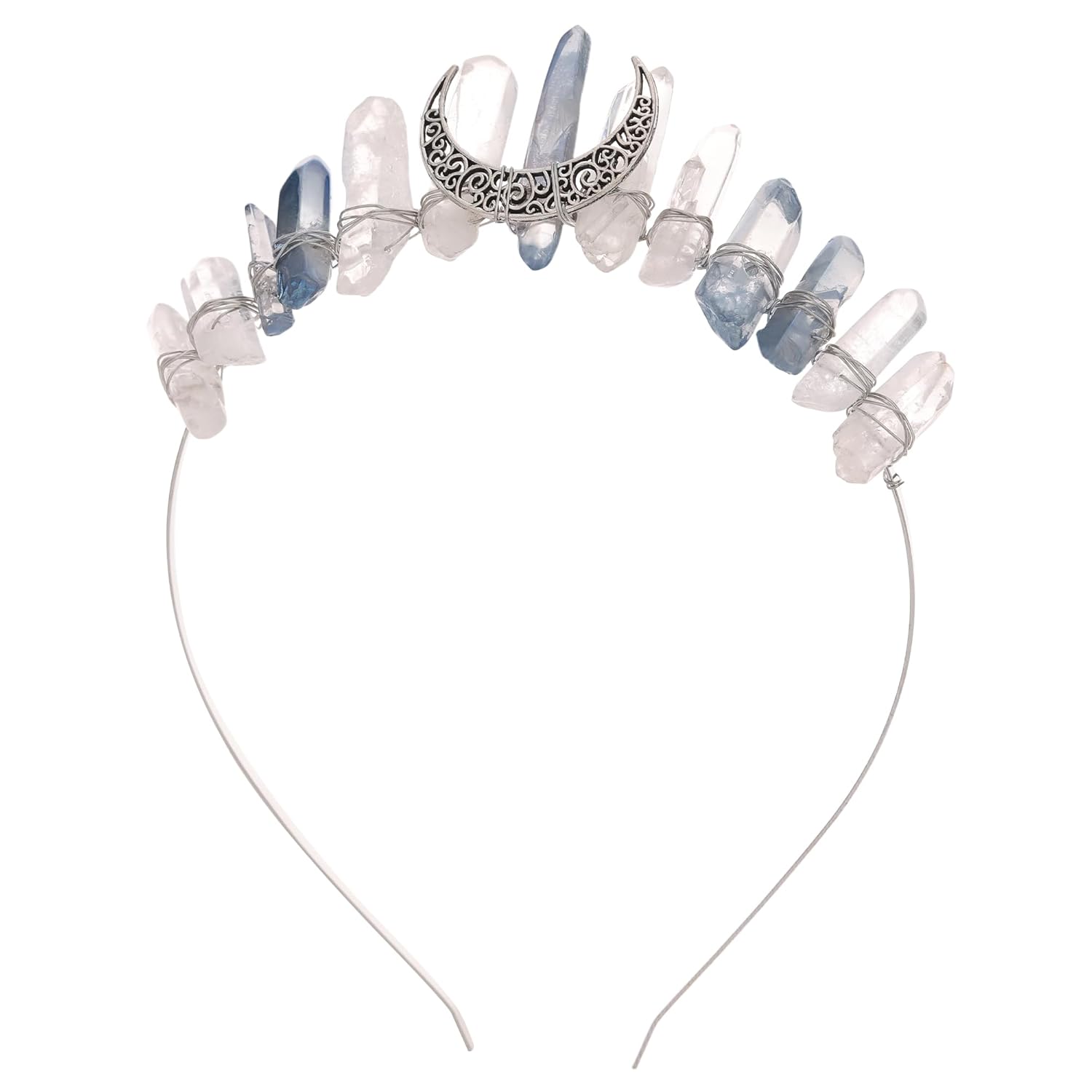 - Fantasy Crystal Moon Crown: Crafted with shimmering quartz crystals and a silver moon centerpiece, this elegant fantasy tiara blends fairy, elven, and witch aesthetics, for adult women seeking magical statement headwear