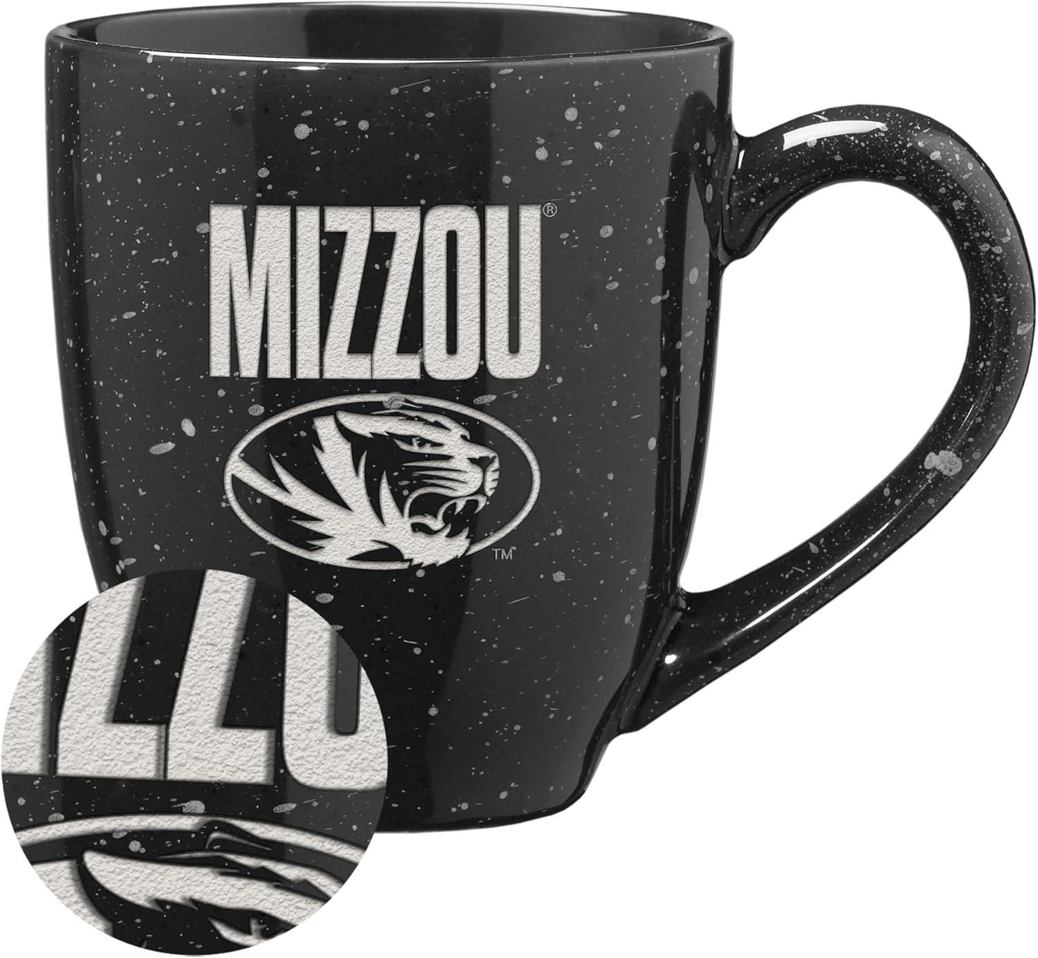 Rico Industries NCAA Missouri Tigers "Mizzou" 16 oz Team Color Laser Engraved Speckled Ceramic Coffee Mug
