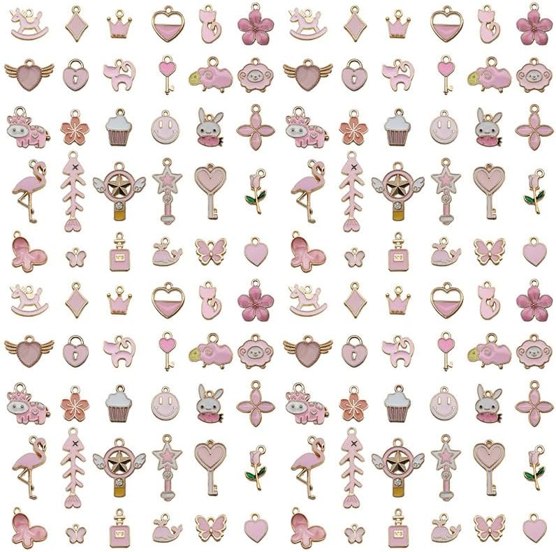 Youdiyla 60pcs Alloy enamel pink series fixed set Pendant Jewelry Making DIY Keychain Earrings Pendant Various Design Charms for Jewelry Making Bracelets Necklace (HK549)