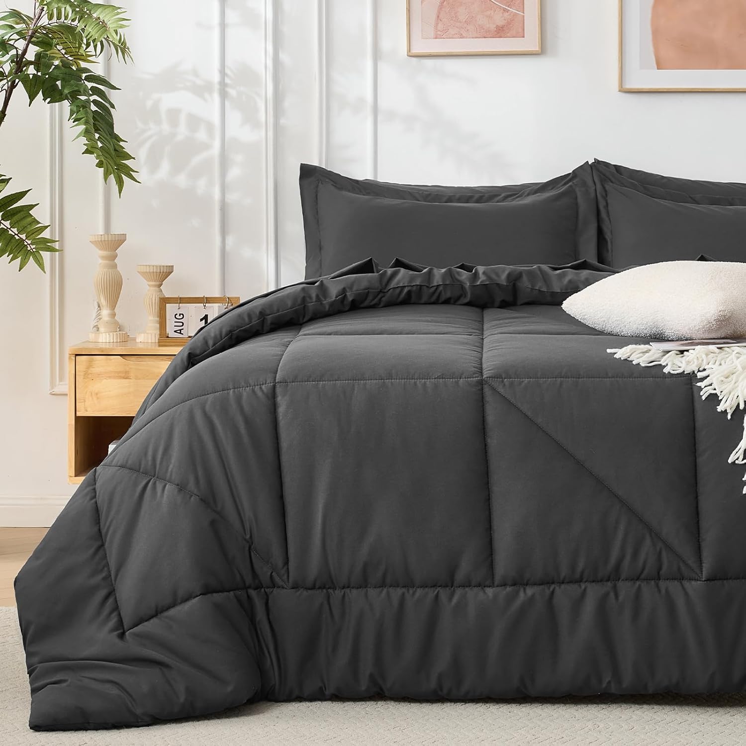 - EXQUISITE WORKMANSHIP: Our solid bedding sets are quilted in a square pattern and prevent shifting or bunching. Besides, the sturdy quality of the comforter ensures its longevity and durability, which can withstand washes without color fade and seam slippage.