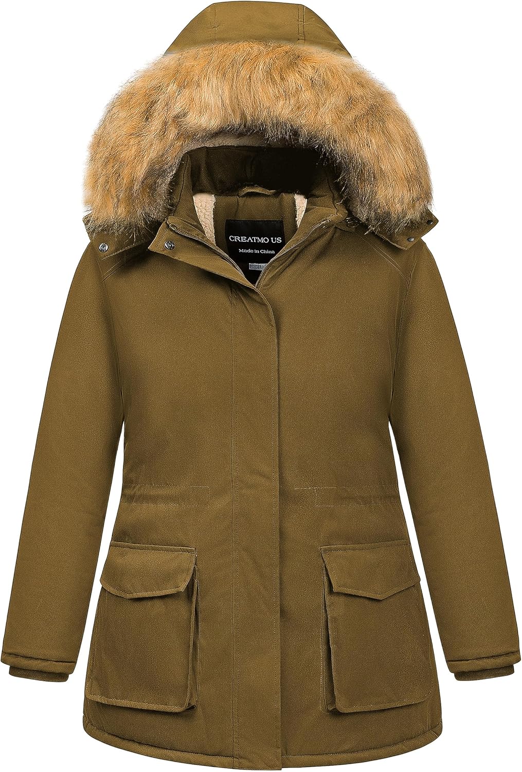 CREATMO US Women's Plus Size Winter Coats Warm Parka Jackets Sherpa Lined Detachable Fur Hood Available in Size 1X to 5X