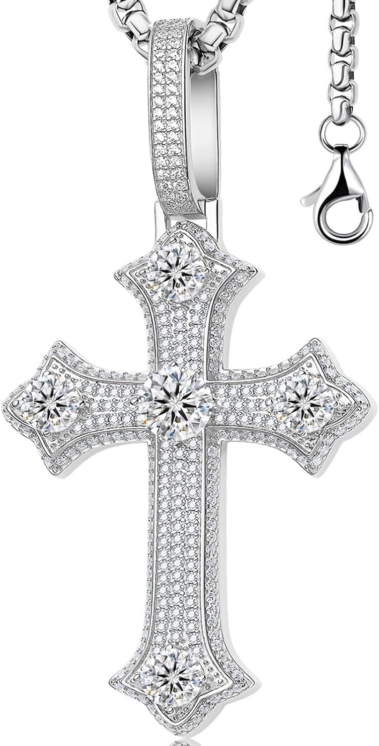 Moissanite Cross Necklace for Men,D Color Iceout Diamond Crucifix Pendant,S925 Silver Lab Diamond Hiphop Pendant Christian Jewelry for Hiphop Men Rapper