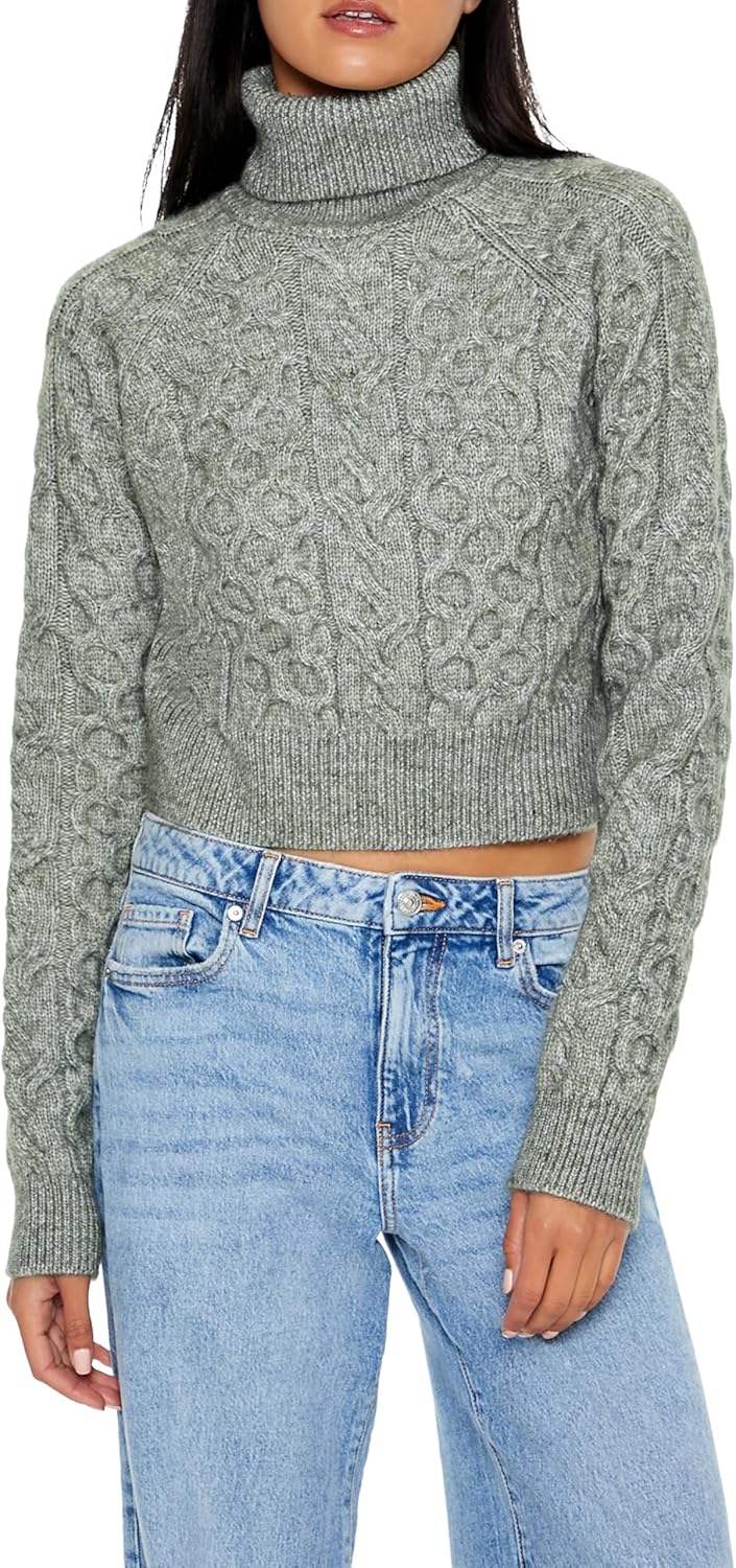Forever 21 Womens Cropped Cable Knit Turtleneck Sweater