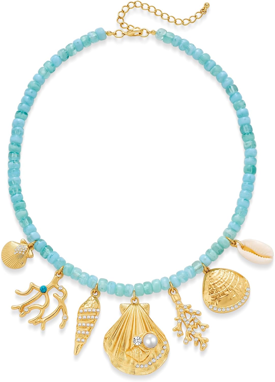 Shell Starfish Charm Necklace For Women Boho Ocean Themed Necklaces for Women, Layered & Charm Pendant Necklaces Summer Beach Jewelry